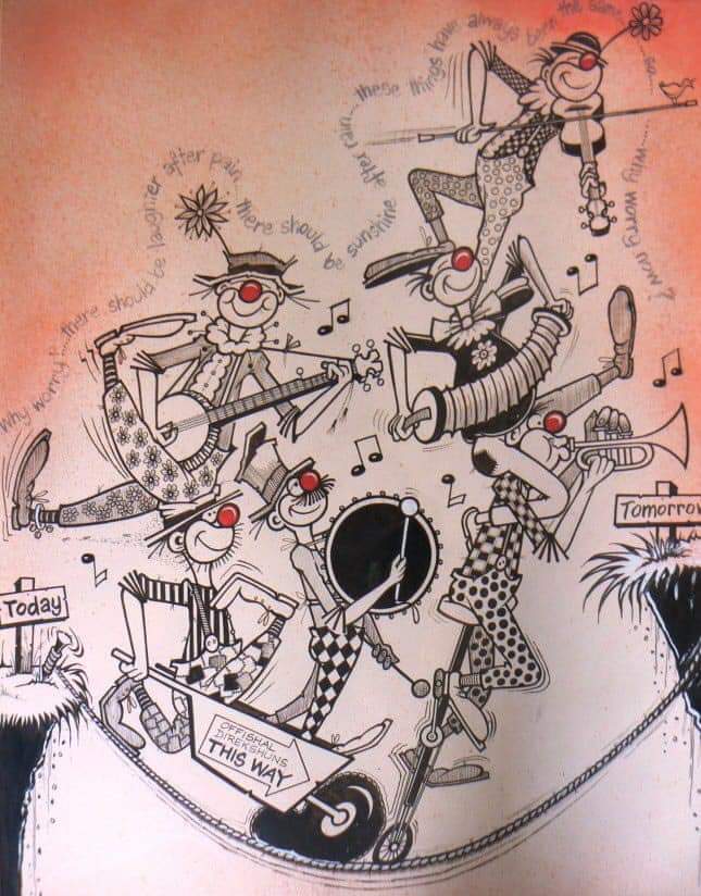 Inspired by Mark Knopfler’s song (Why Worry) this painting, while acknowledging life can be challenging, offers hope that (as in the words of Captain Tom Moore) ‘Tomorrow will be a good day”.