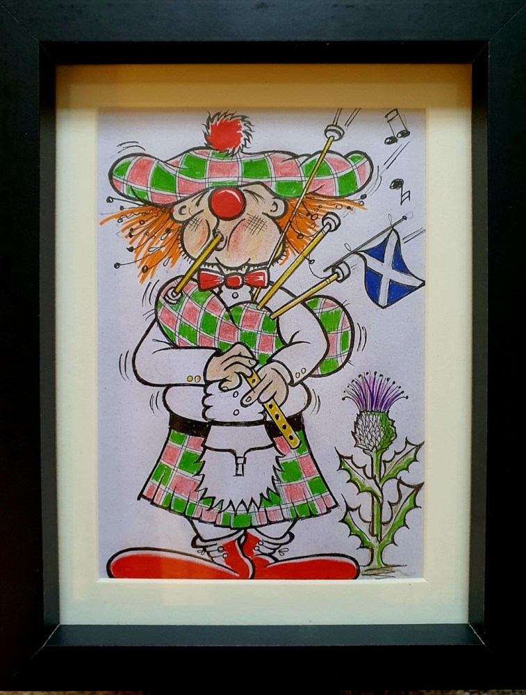 This little drawing was created in 2022 as a gift for a friend. At the time we both worked in Childrens Services and had to travel to Scotland to visit a child. As luck had it, it turned out we unexpectedly had to stay overnight in a hotel and one enduring memory was the pair of us trapsing round local shops to buy toothbrushes and underwear. Since my friend loved all things Scottish I drew this little picture as a gift for them.