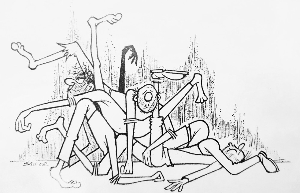 One of the delights I’m finding as I trawl through hundreds of old drawings is when I come across something without a caption or date that I have no idea why I drew it in the first place but which still makes me laugh. This gem is a prime example, which I am delighted to include in my collection here.