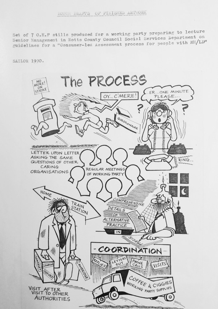 Back in 1990 I was asked to create a set of overhead stills to be used as training aids for staff working with people with learning disabilities. At that time I created a lot of similar work for local authorities because they felt staff took more notice, and absorbed more information, if it was illustrated in a humourous way.
