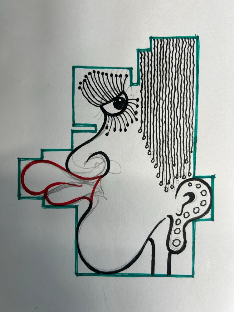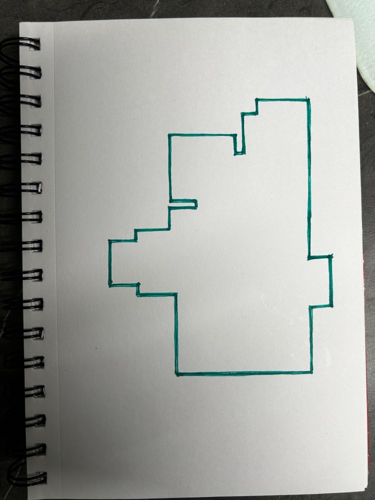 My latest artwork. A representation of a piece of cushion flooring I had to cut out and fit in the kitchen today. I call it “The Sod”. Later embellished.