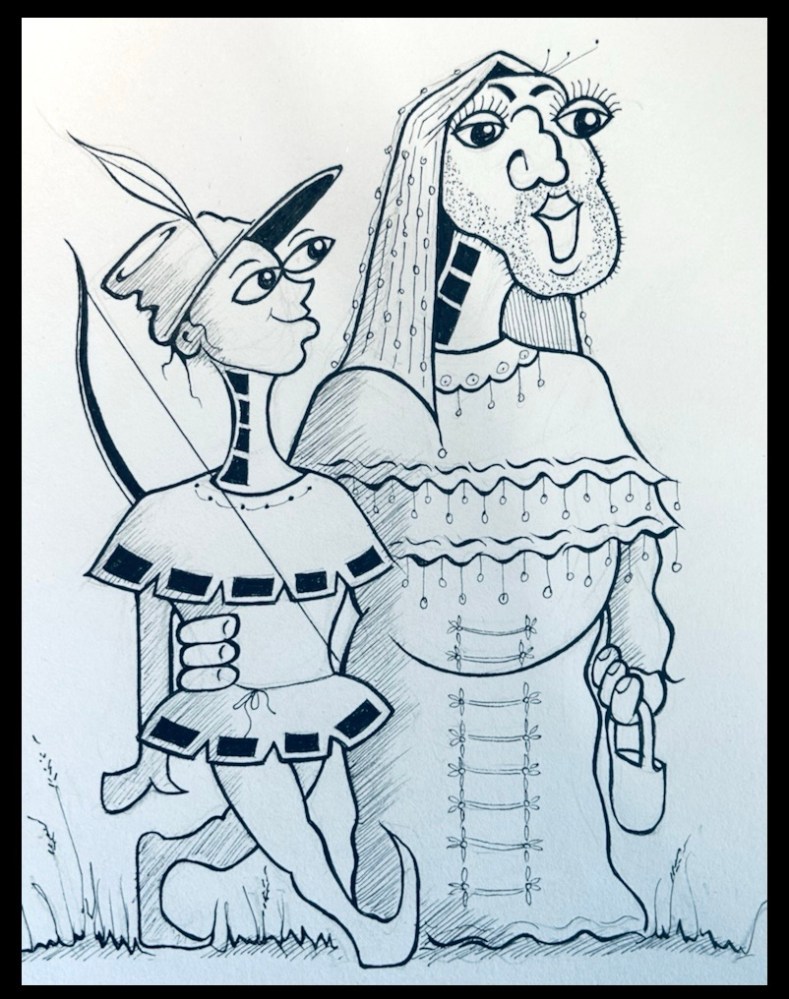 When Robin Hood and Maid Marion were invited to the Sheriff of Nottingham’s annual fancy dress ball it fell on a non-pay week so they couldn’t afford to hire costumes. Never not the legends, after a quick clothes swop Maid Robin and Marion Hood stepped out and headed for the shindig.