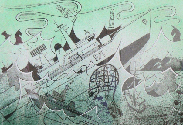 The warship Scylla (a Leander class frigate) being rammed by the Icelandic Gunboat Aegir during fishery protection duties in the Cod War of 1973. During off-duty hours we had chess competitions and beard growing competitions.