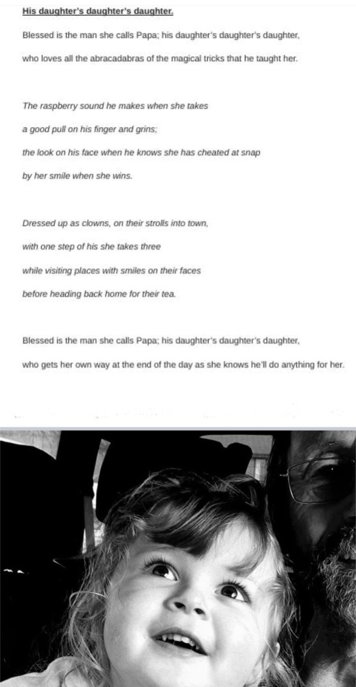His daughter’s daughter’s daughter. My poem. #InternationalWomensDay Discover more from spailpinfanac.com Subscribe to get the latest posts sent to your email. Type your email… Subscribe Share this: Click to email a link to a friend (Opens in new window) Email Click to share on Facebook (Opens in new window) Facebook Click to share on X (Opens in new window) X Like Loading... Leave a comment Cancel reply