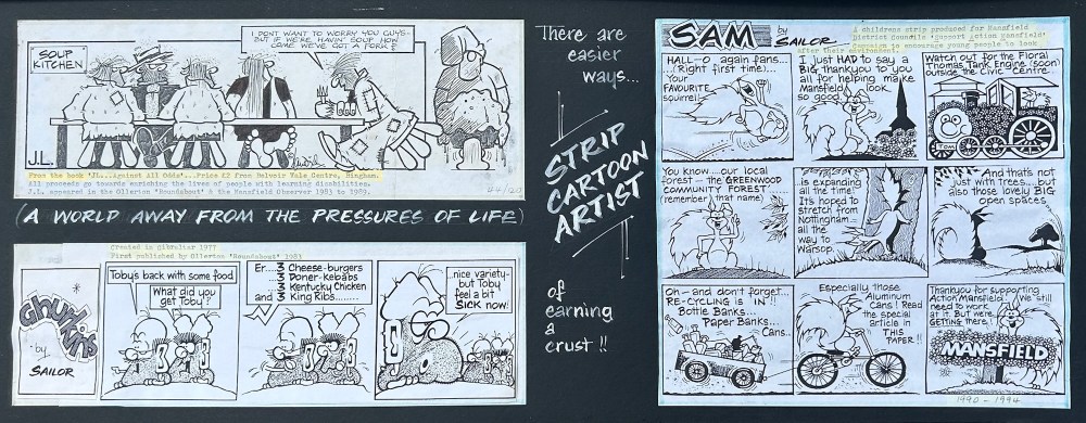 In addition to my fairly well-known cartoon strip (J.L.) which has its own page here in my website, I also created several others during the 1970s/80s/90s. These are samples of a few of them.