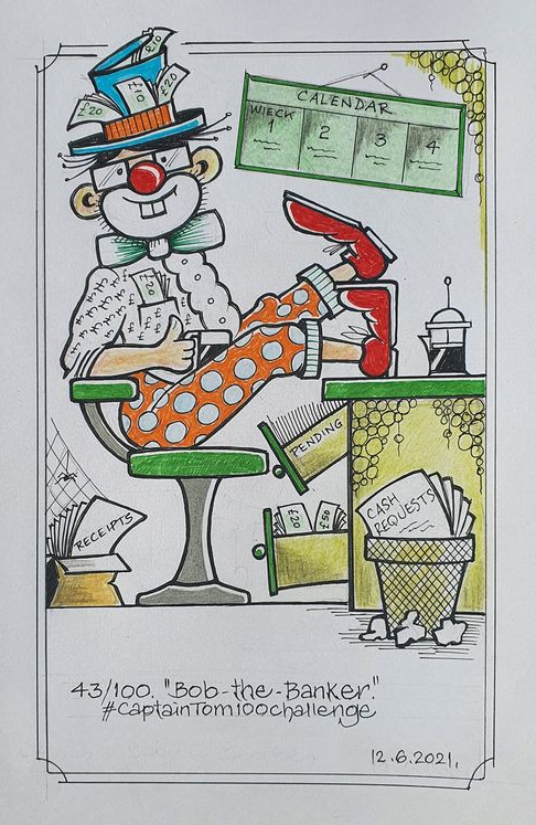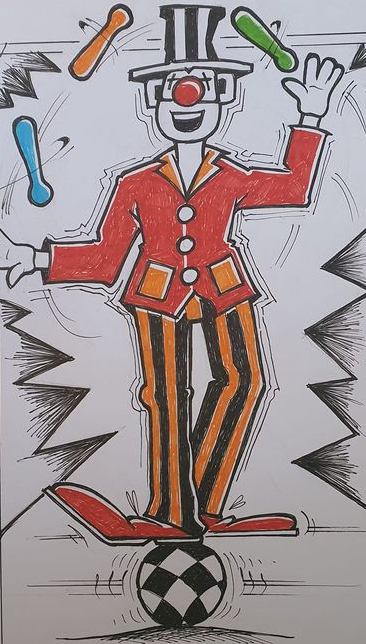 Responding to the Captain Tom 100 challenge for charity I drew one clown every day for 100 days. The original artwork was donated to the Children’s Ward, Freemans Hospital, RVI, Newcastle. Here is a selection. (click on one image to scroll through the collection).